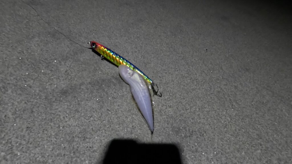 この魚を隣で餌釣りをしている方に差し上げて、釣りを再開しましたが