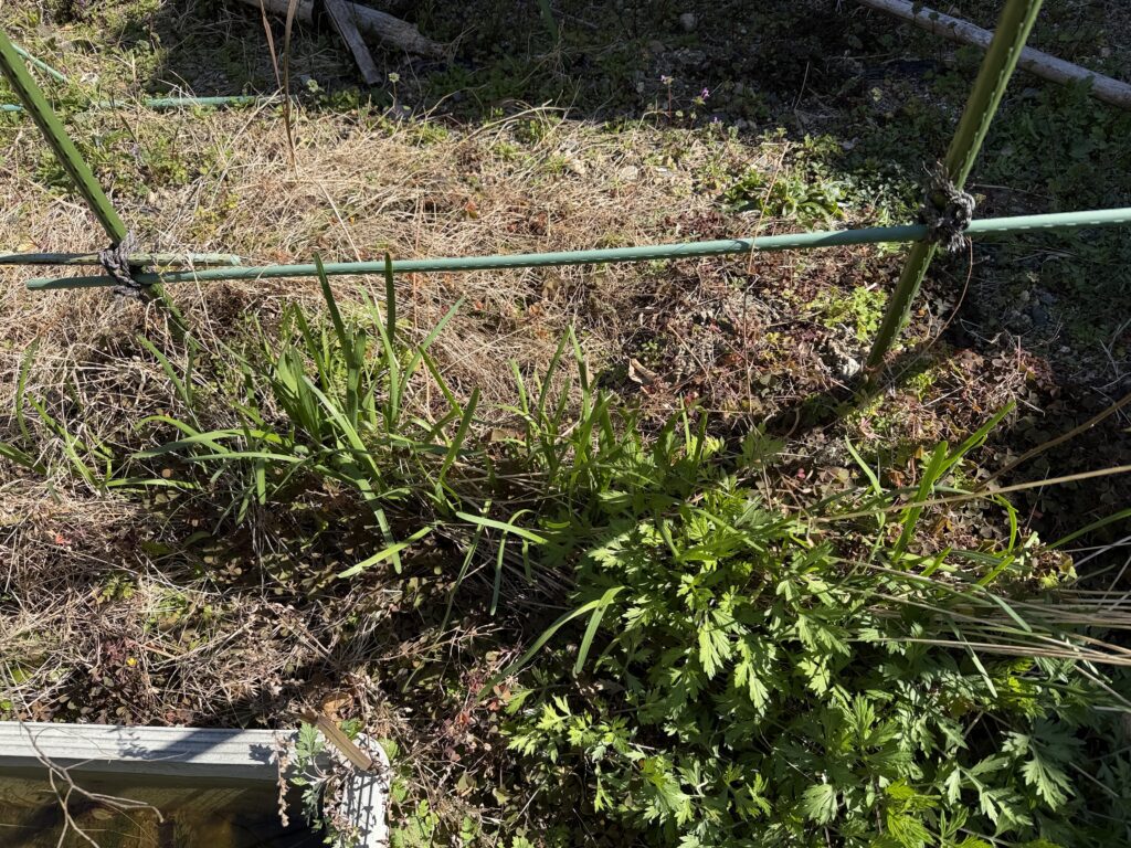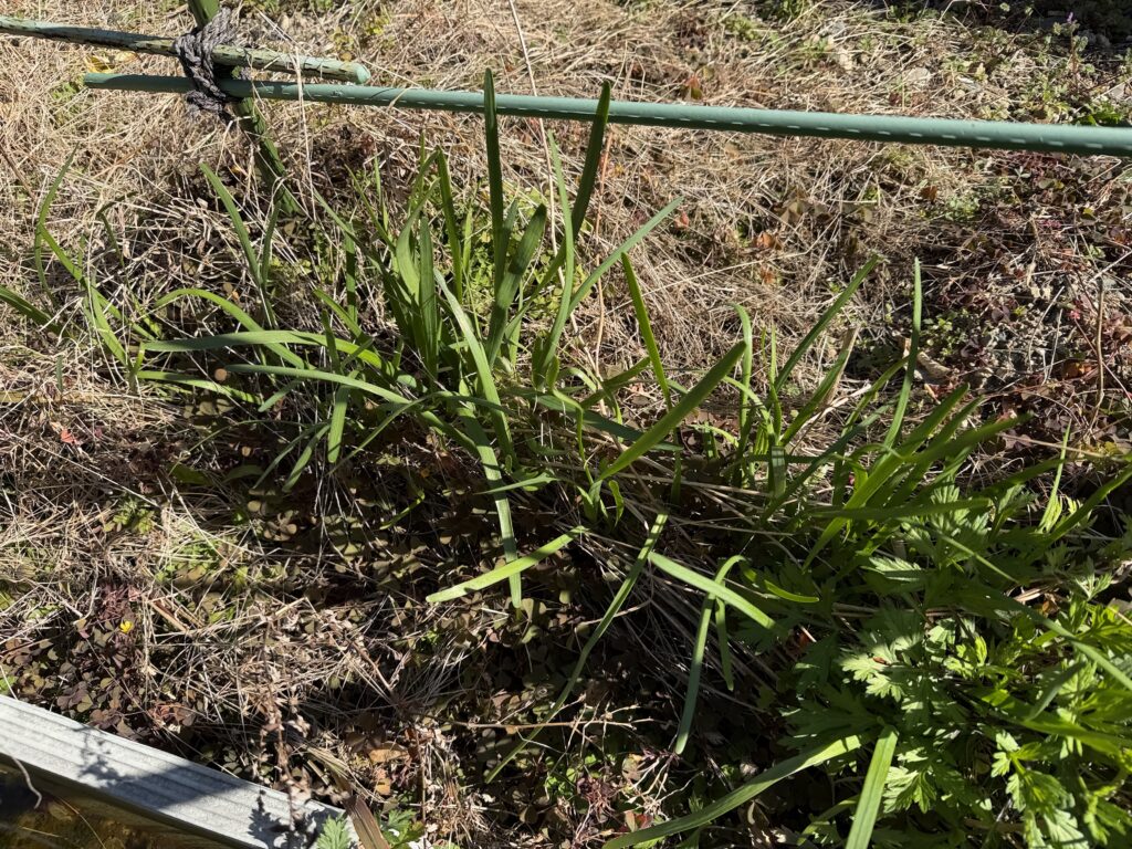完全放置じゃ全然ワサワサしてなかったけど、太いしっかりしたニラが生えておりました