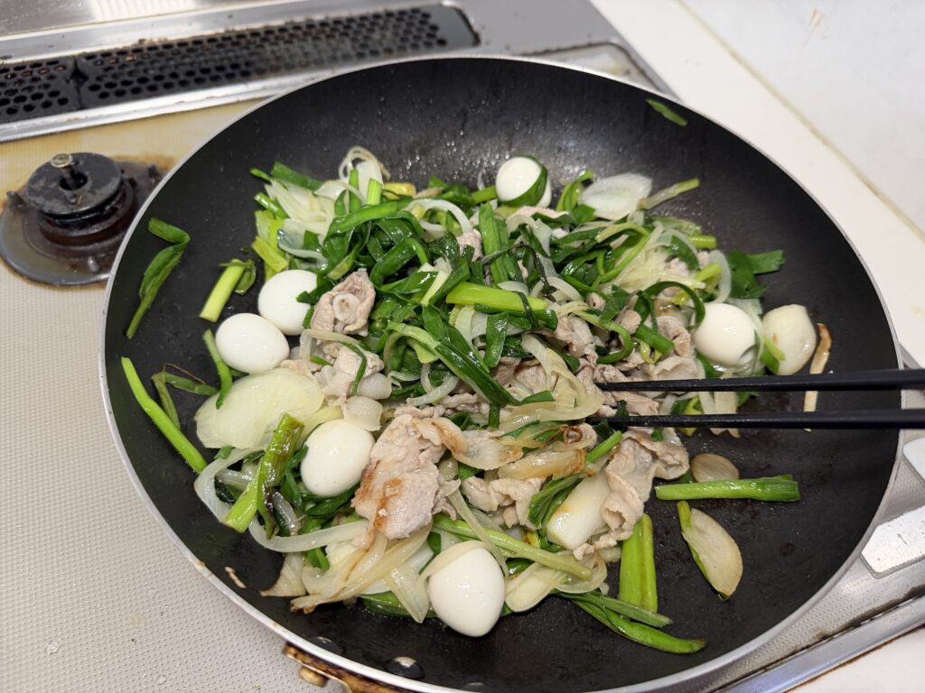 そしてキッチンで他の野菜や肉と炒めて