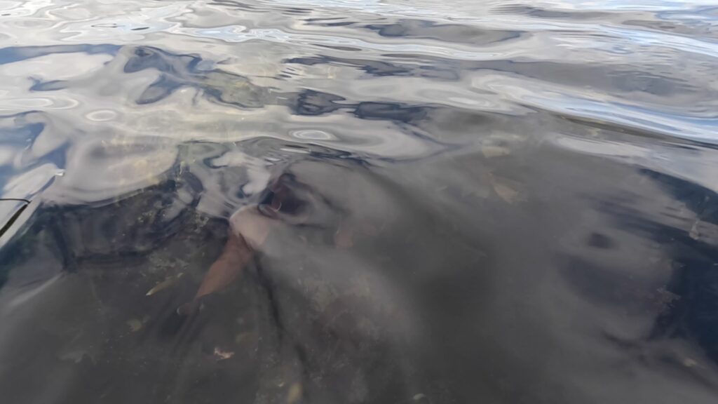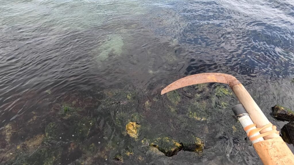 ポイントの向かうと、もうワカメを刈り採って帰る人に会ったんで
