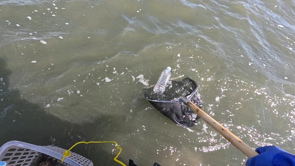 風、波に煽られ牡蠣丸からまたペットボトルが外れてしまった