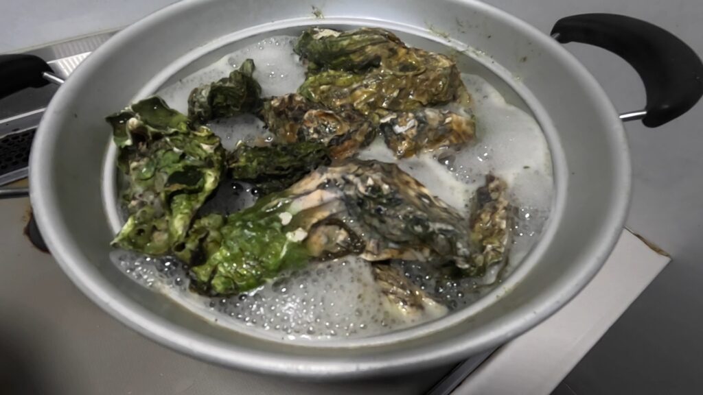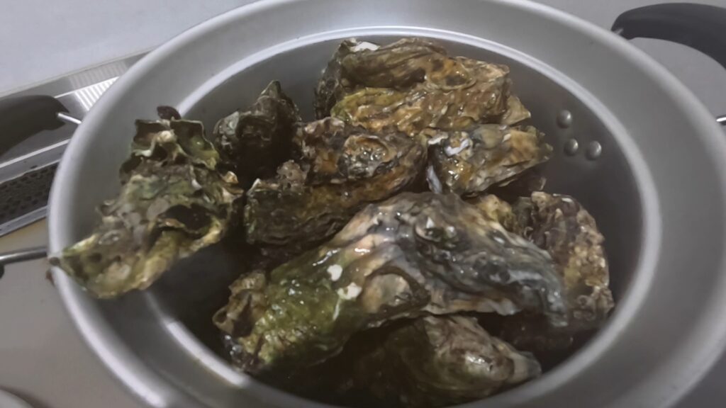 どの道剥いた牡蠣も水で洗うんで熱さを取ってから剥くことにしたところ