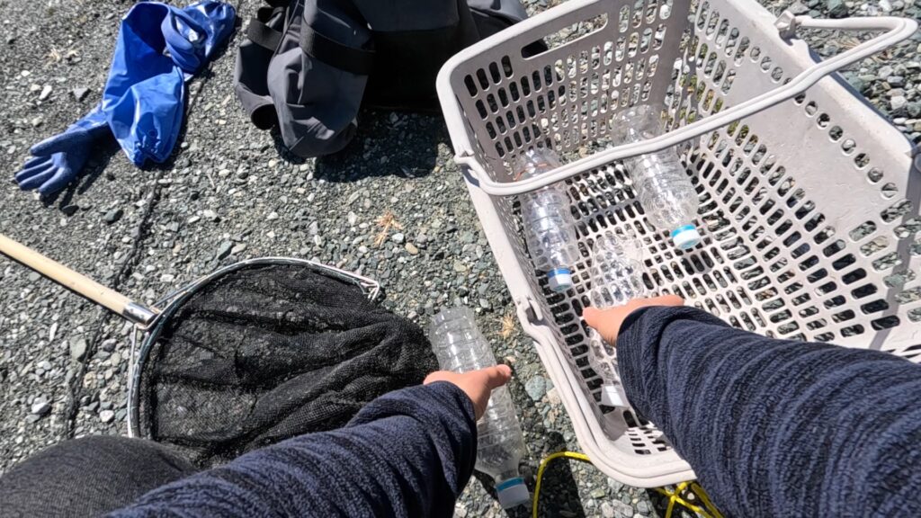 外れたペットボトルを回収に行きます