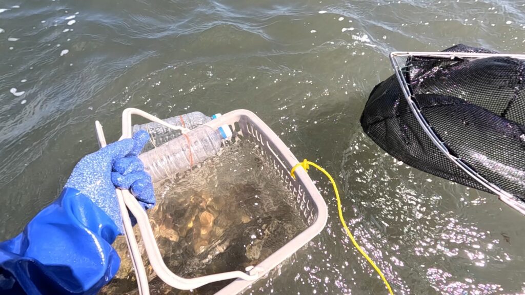 これだと、水の中を覗く必要が無い為、水の濁りや爆風の中でも牡蠣拾いが成立します