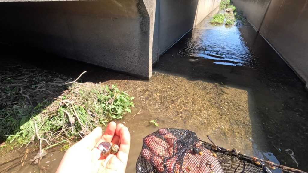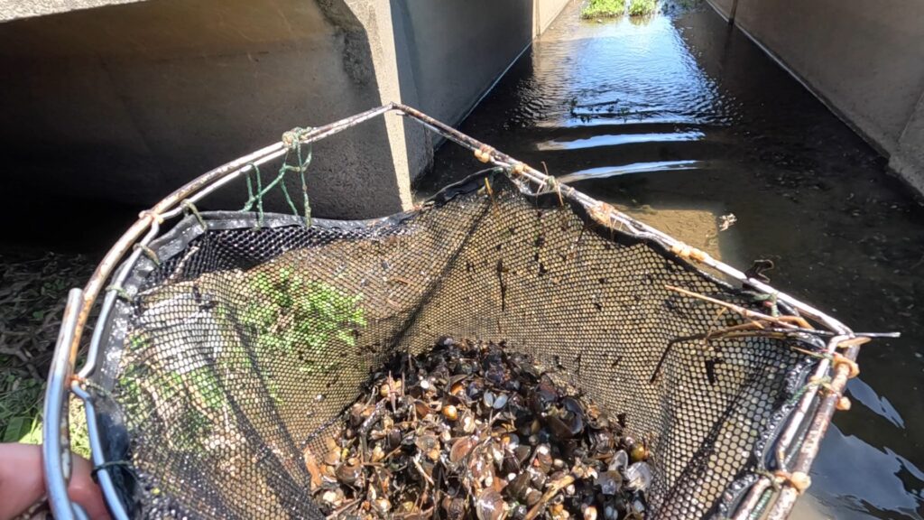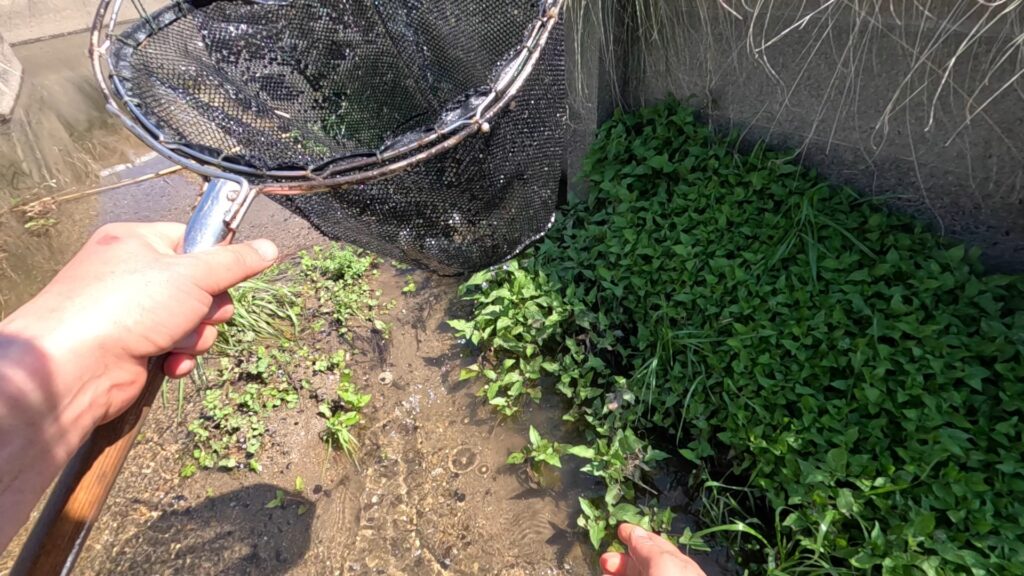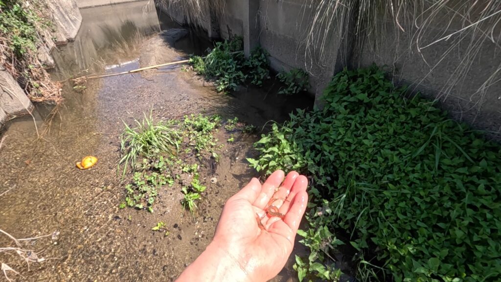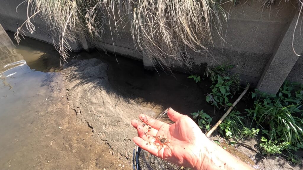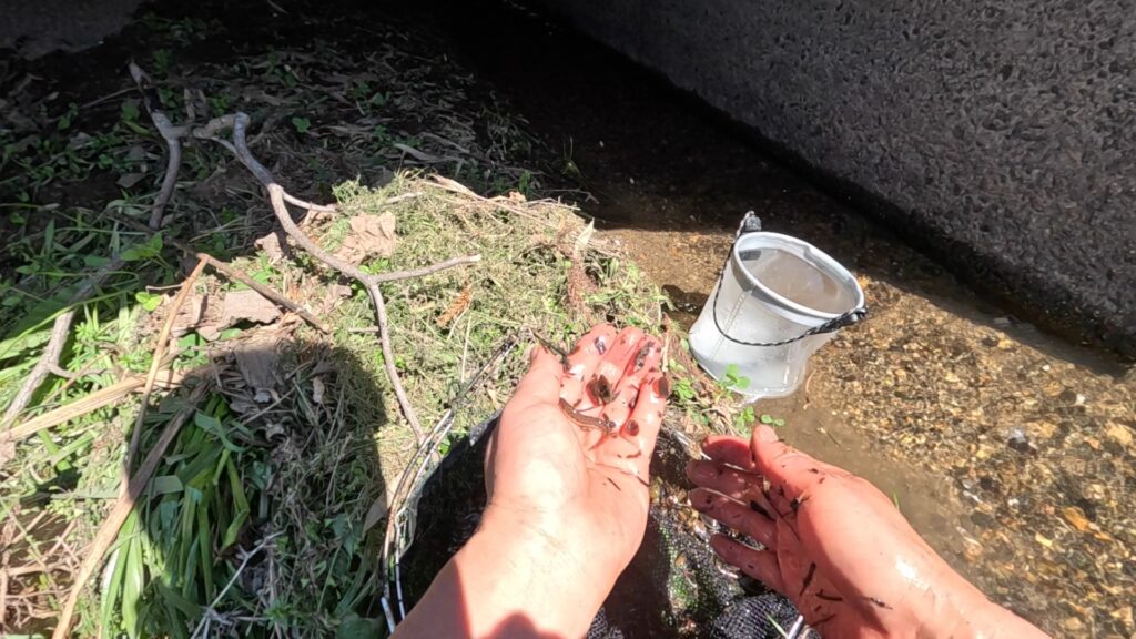 モクズガニやメダカ、カワムツやヨシノボリを掬ったんですが